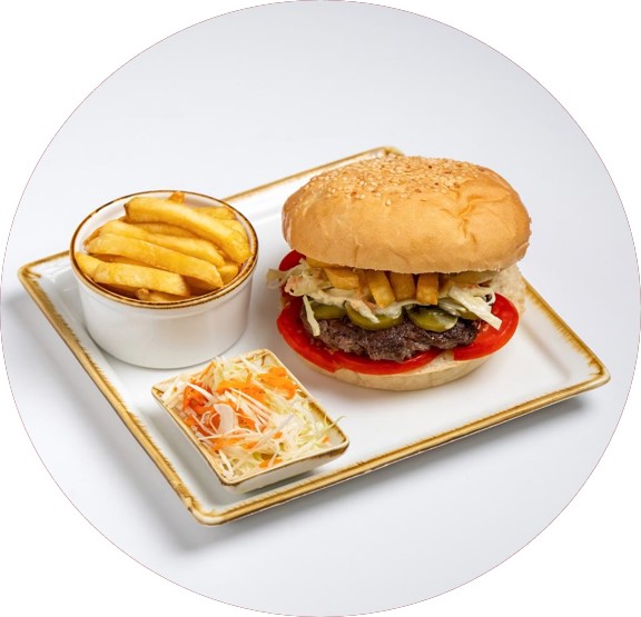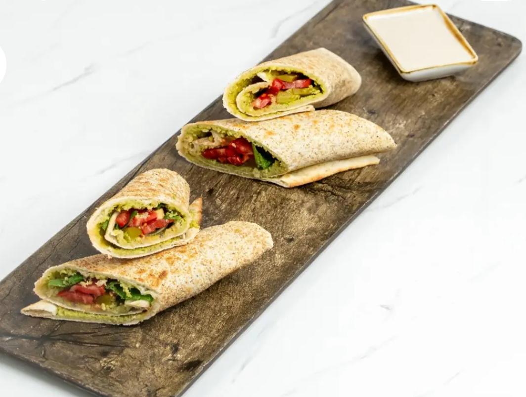 Tomato, pickles, tartar, mint, lettuce and parsley
