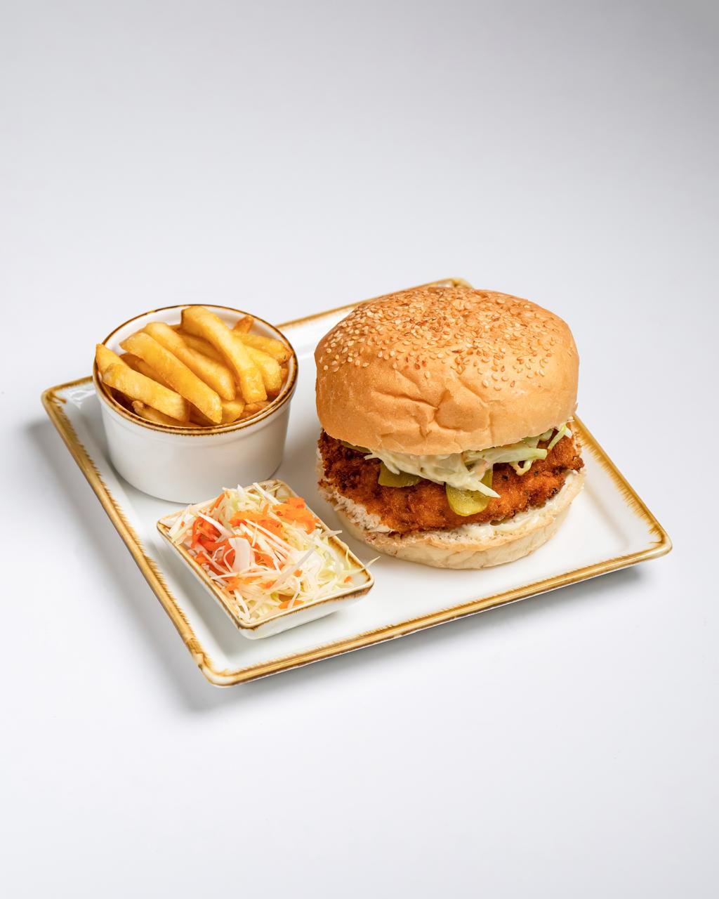 Chicken, lettuce, pickles, cheese and honey ,mustard sauce