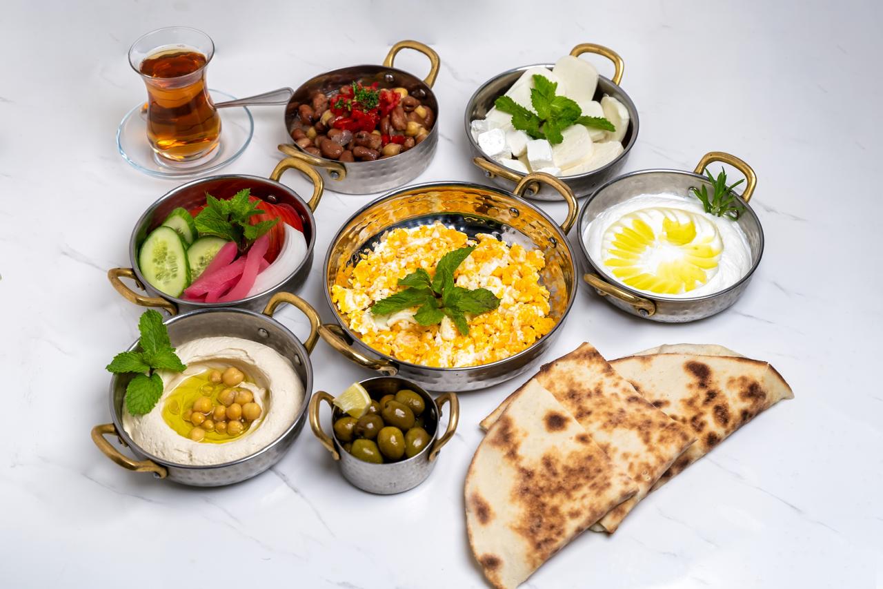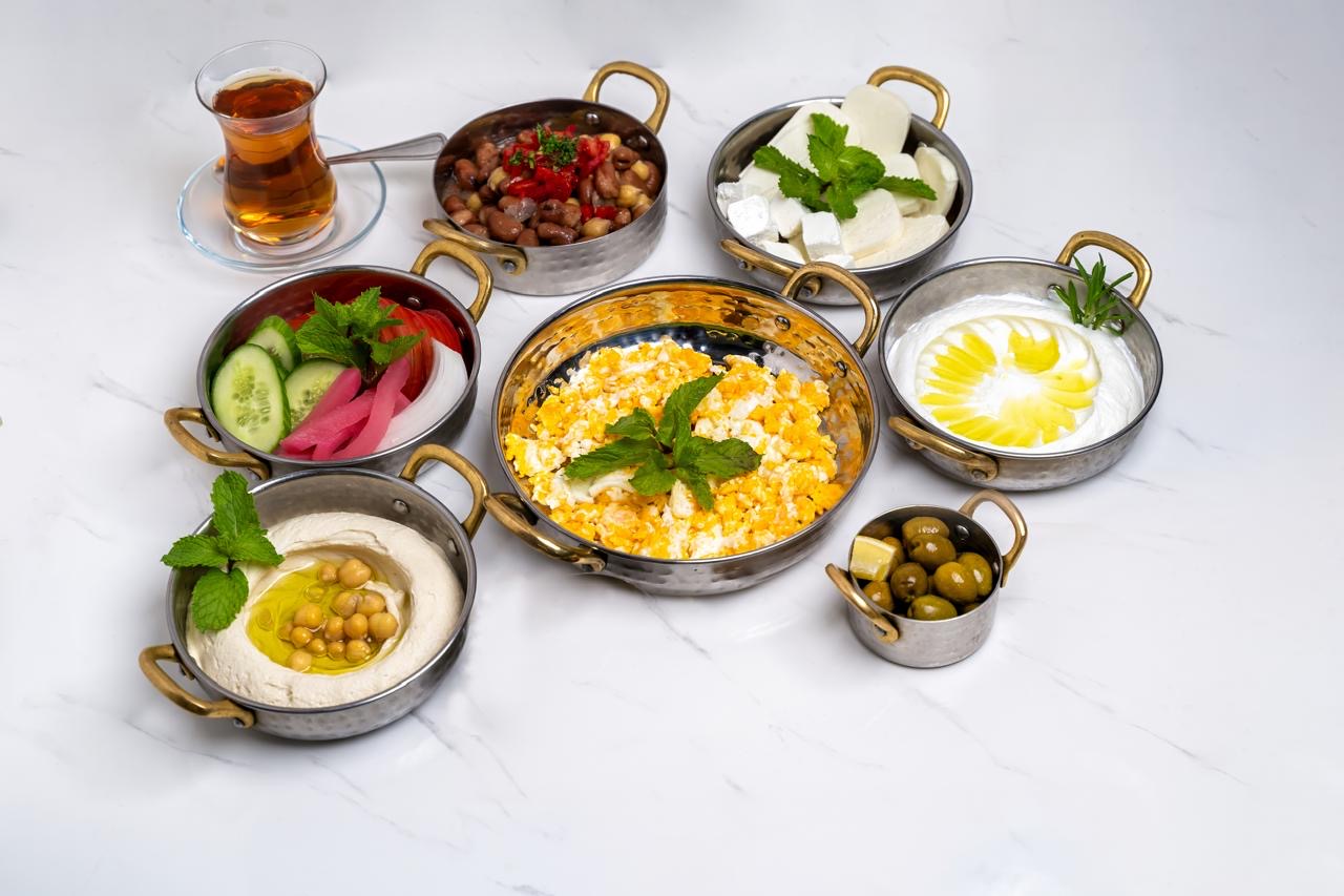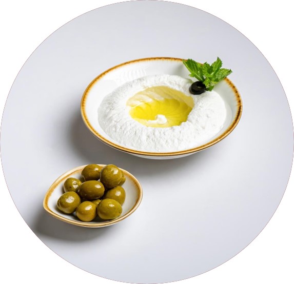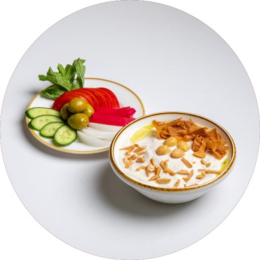 Labneh, foul, cheese, eggs, choice of manakish ( zaatar or cheese )and vegetables and tea