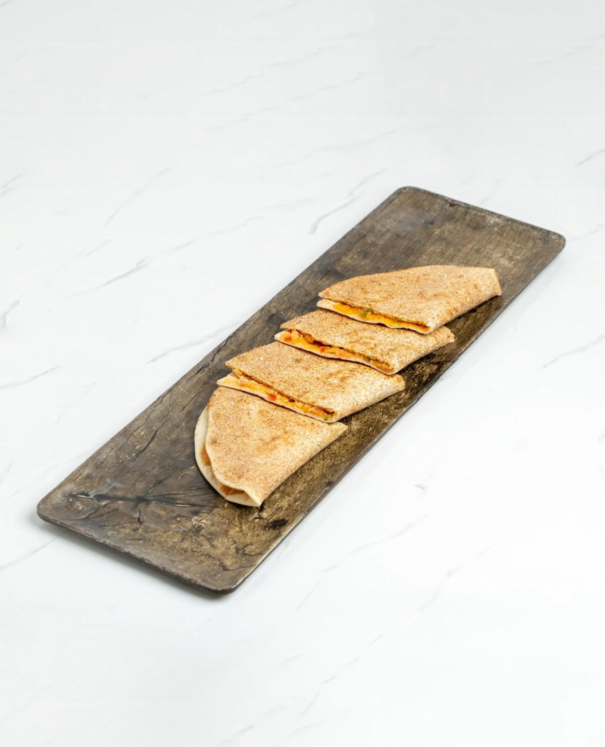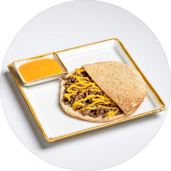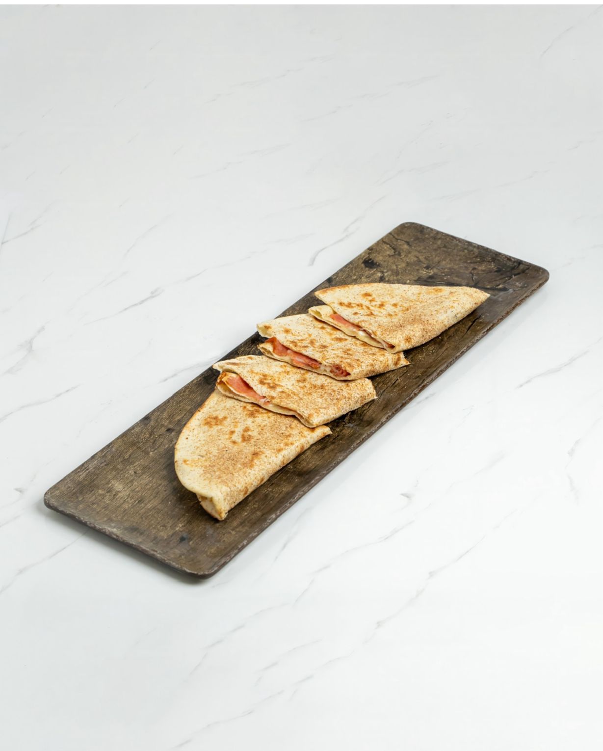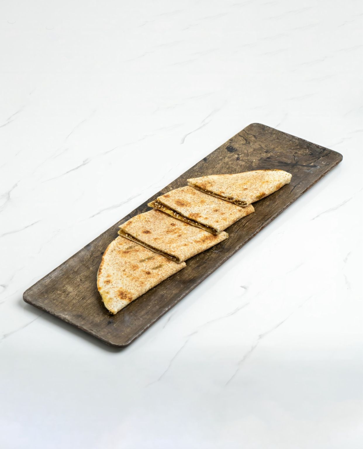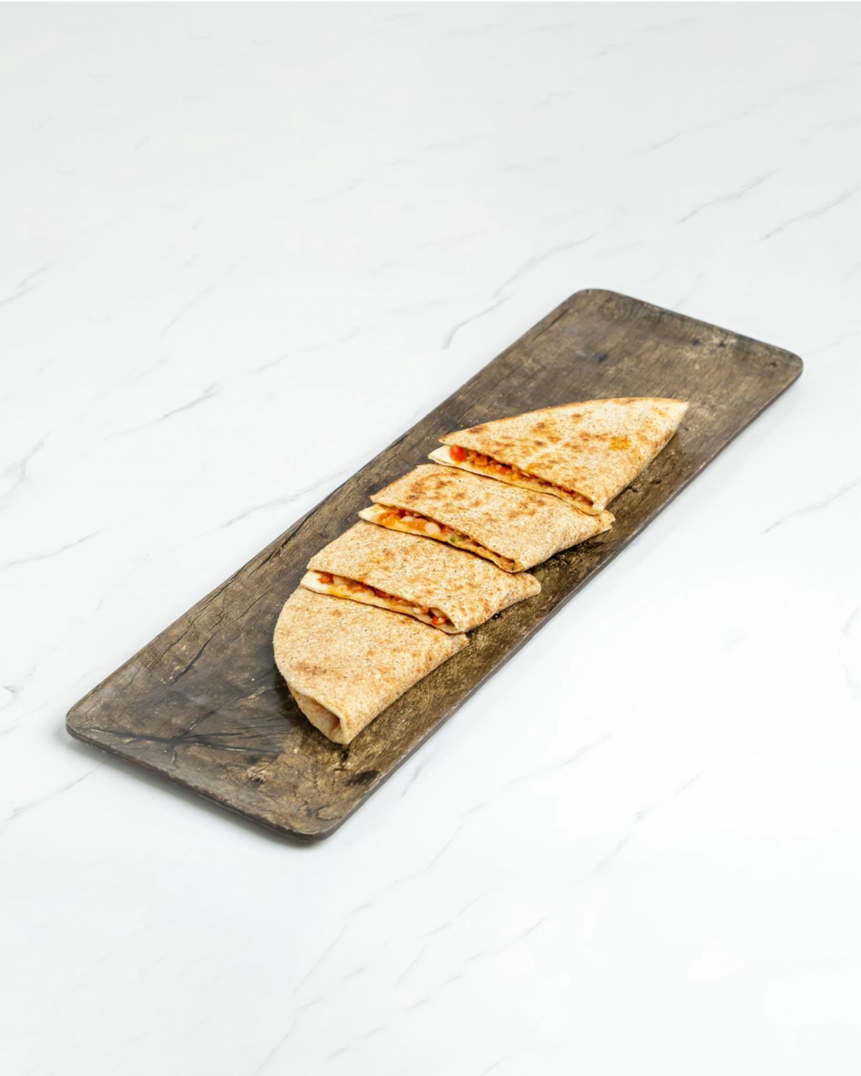 Beef, mushroom, cheddar cheese and red pepper sauce with guacamole.
