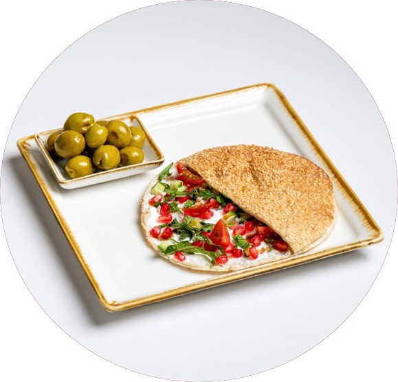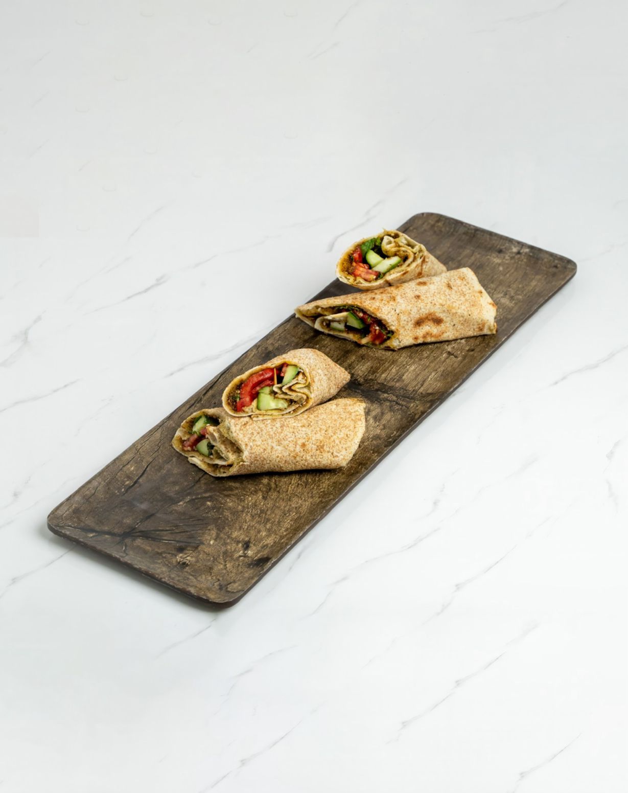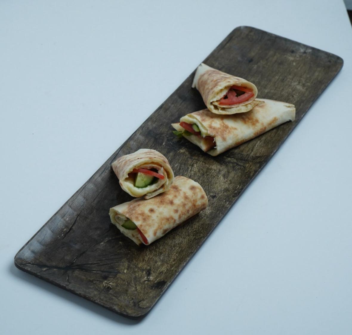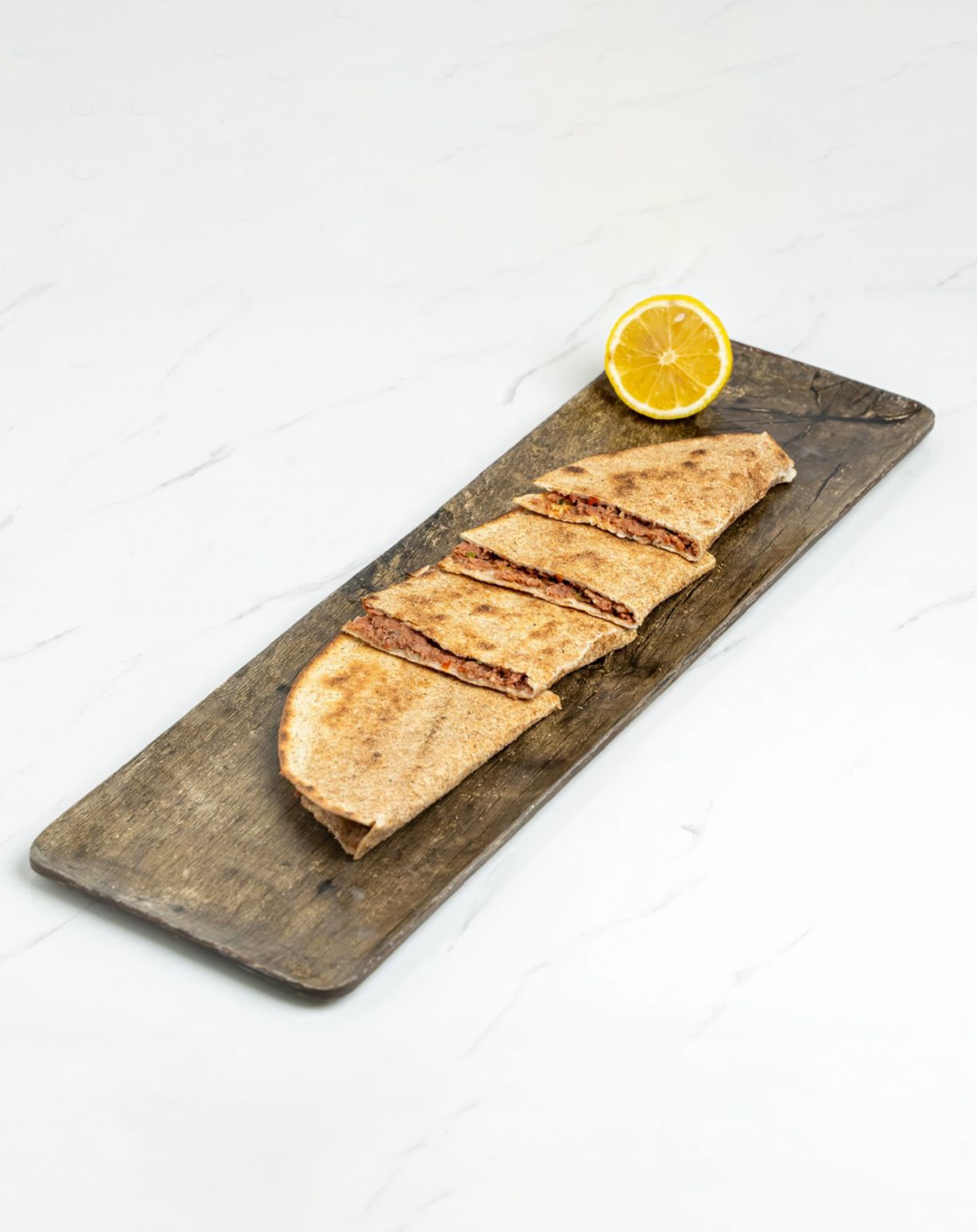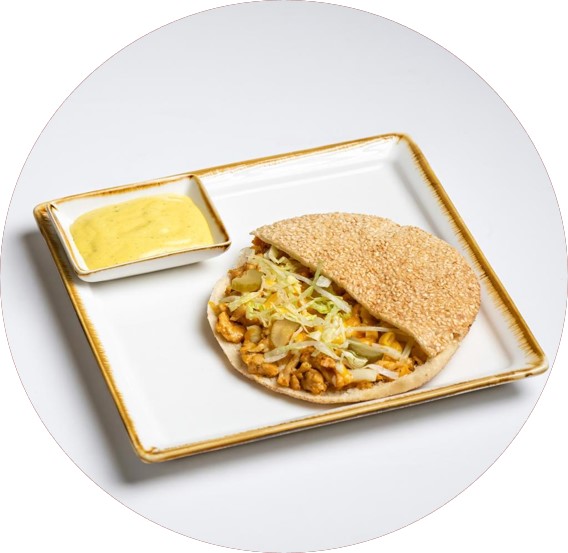 Beef, mushroom, cheddar cheese and red pepper sauce with guacamole.