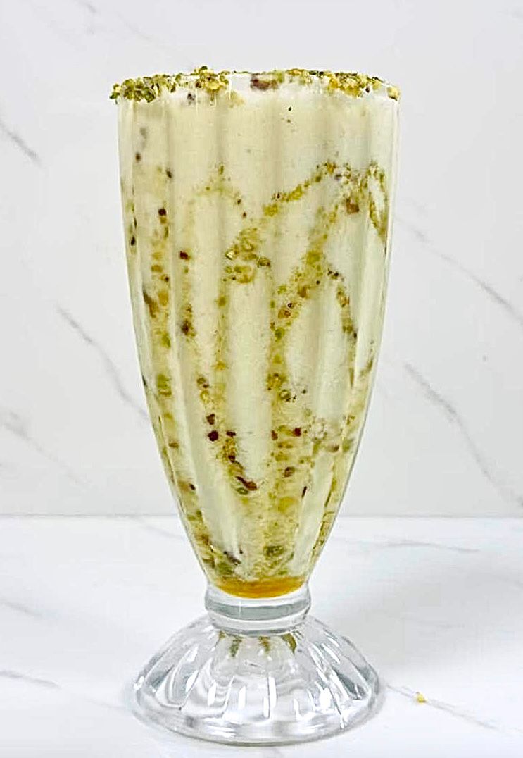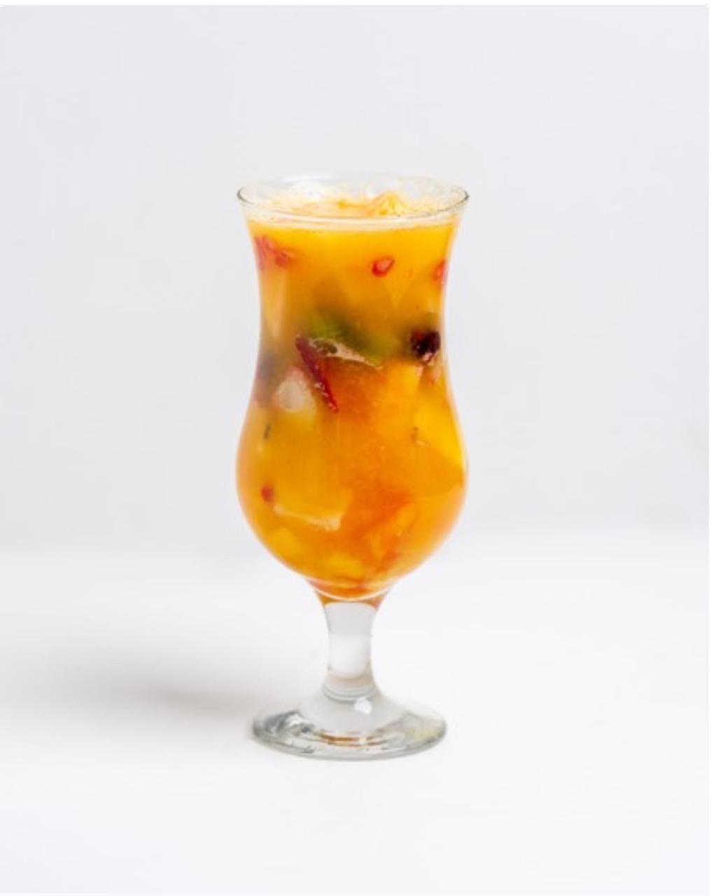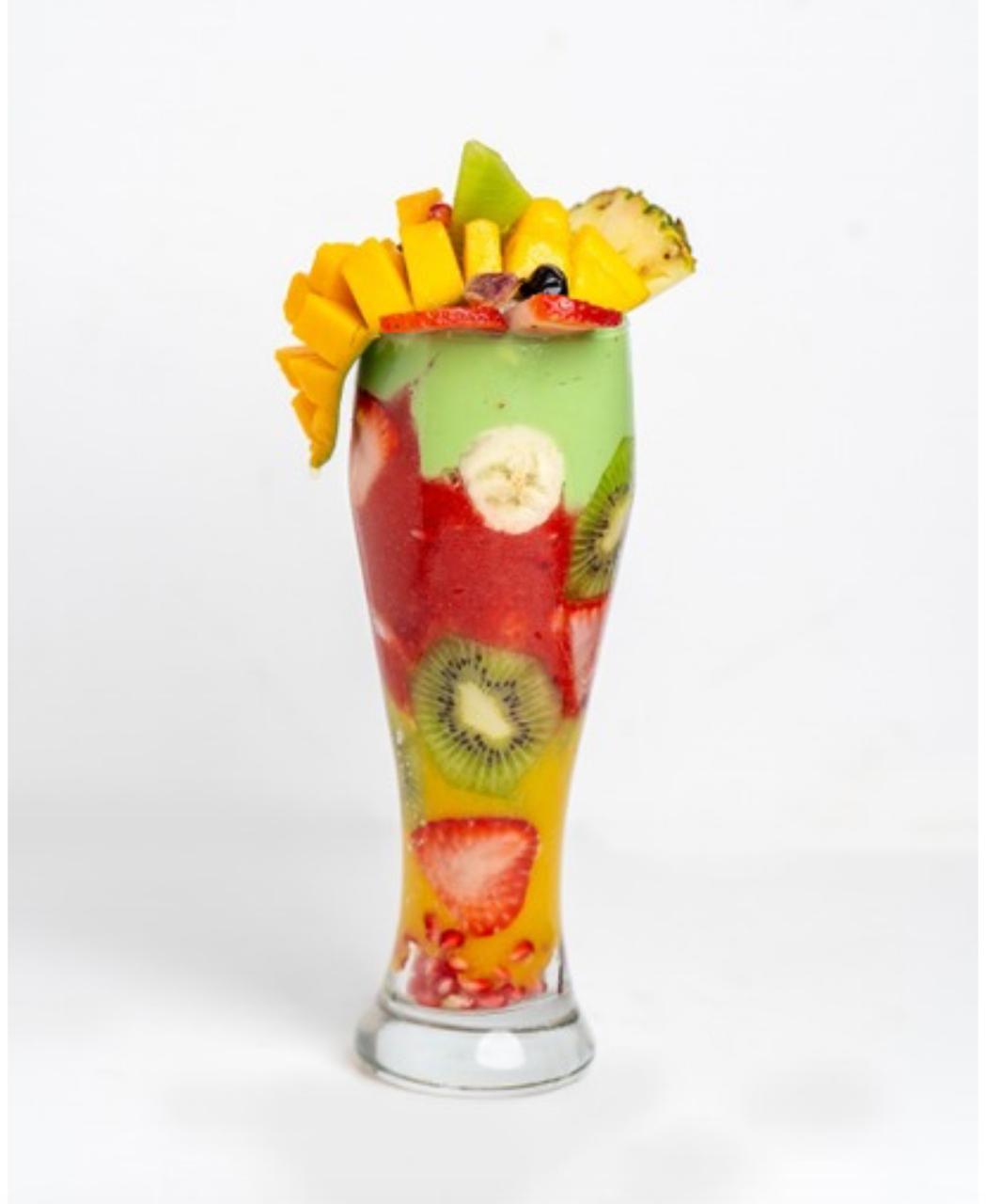 Orange, pomegranate, strawberry, kiwi, mango, sweet melon, almond & pistachio, pineapple