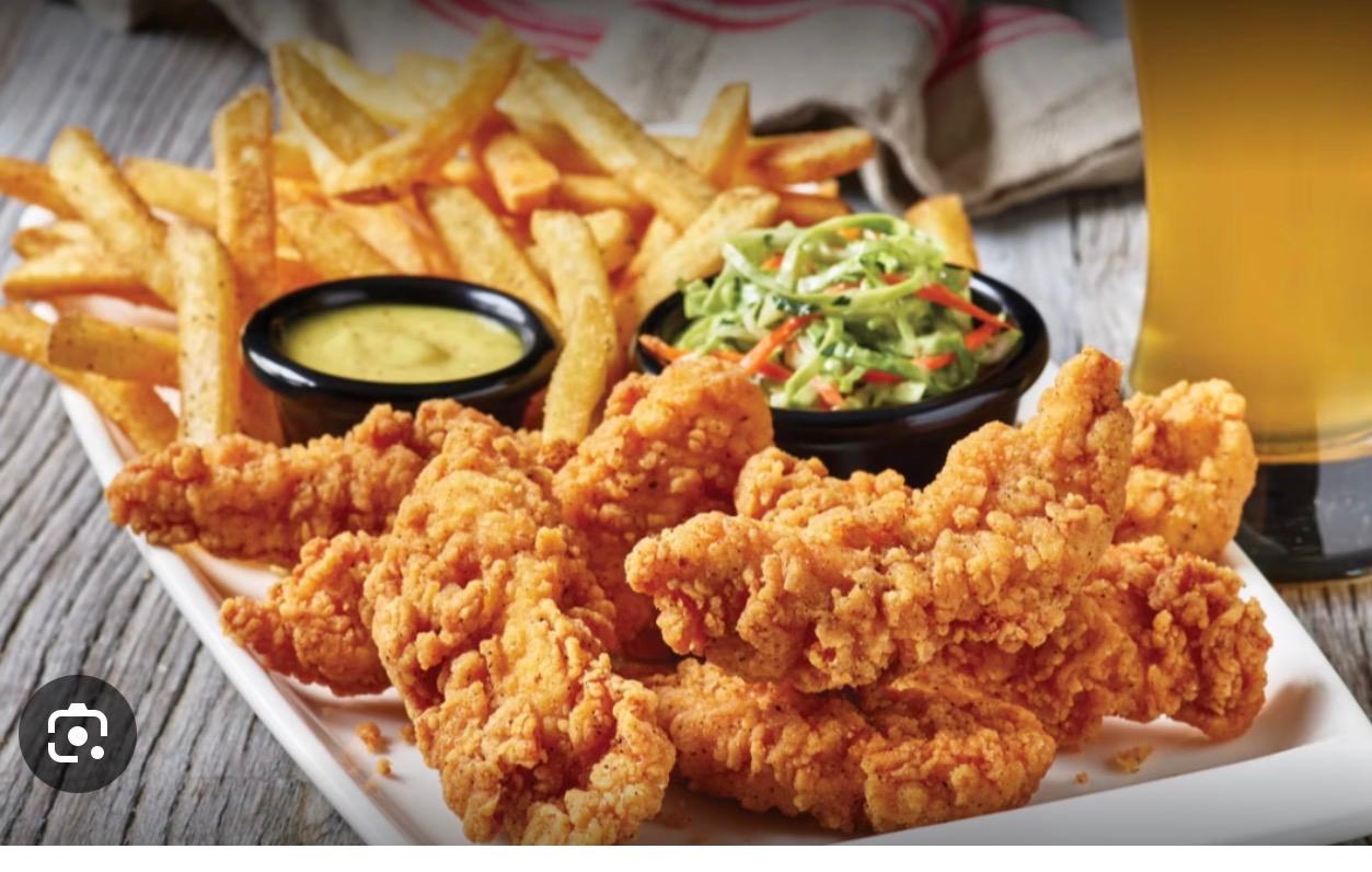 6 pieces of chicken nuggets served with French fries and coleslaw.
