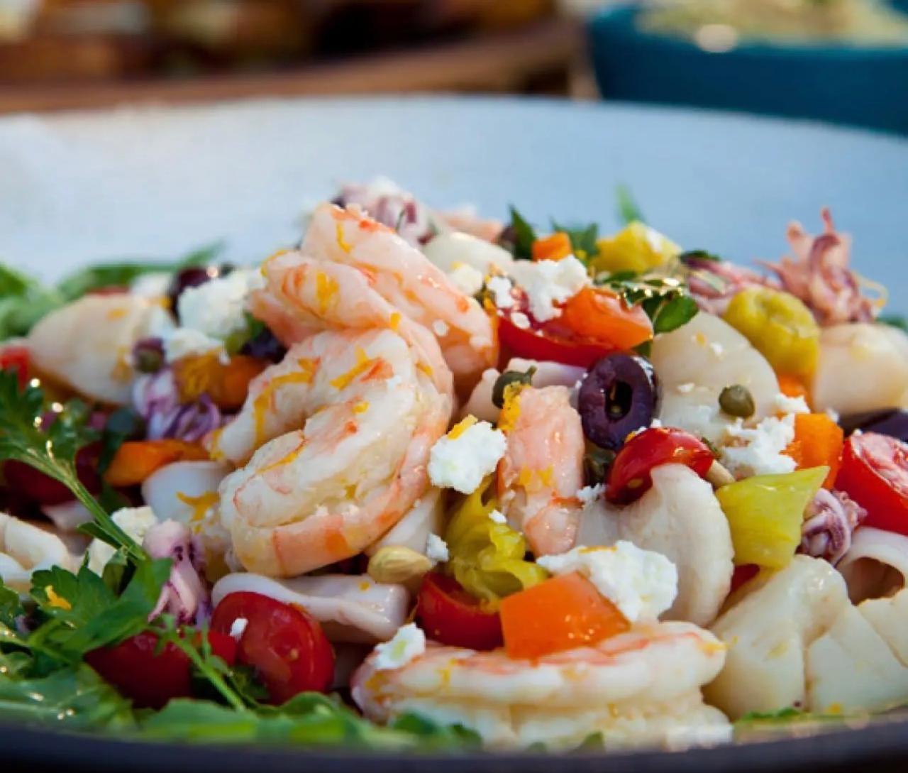 Squid, shrimp, mussels, octopus, black olives and feta cheese