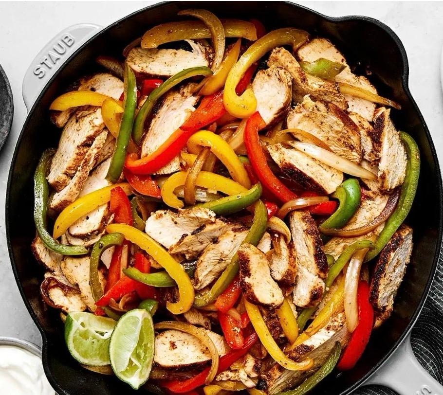 Fajita chicken served with cooked Vegetables and bread tortilla and special sauce