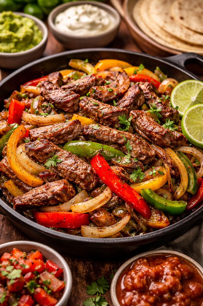 Fajita Veal served with cooked vegetables and bread tortilla and special sauce
