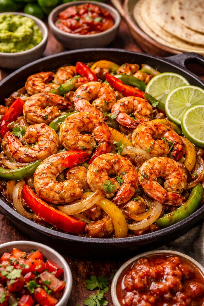 Shrimp Fajita served with cooked vegetables and tortilla bread and special sauce